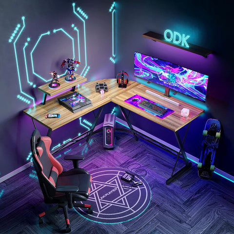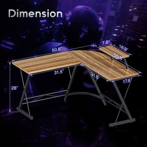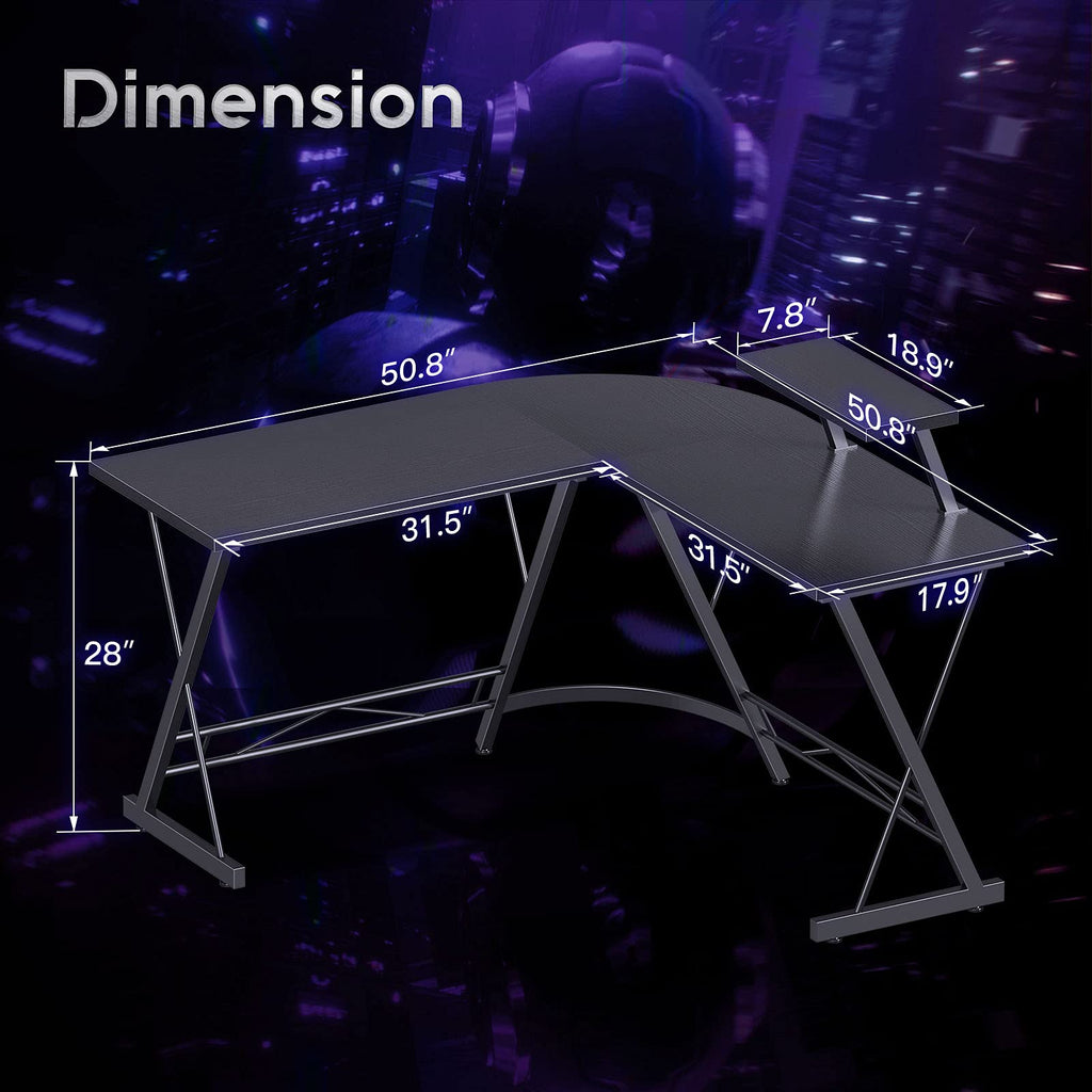 • Plenty of Space: This desk is equipped with a monitor stand and an iron hook to extend the desktop space and give you more space to store items, leaving you more space for working, studying, and gaming. Overall dimensions are 51"(L) x 51"(L) x 18"(W) x 29.5"(H).