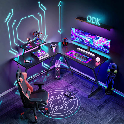 L Shaped Gaming Desk - Black